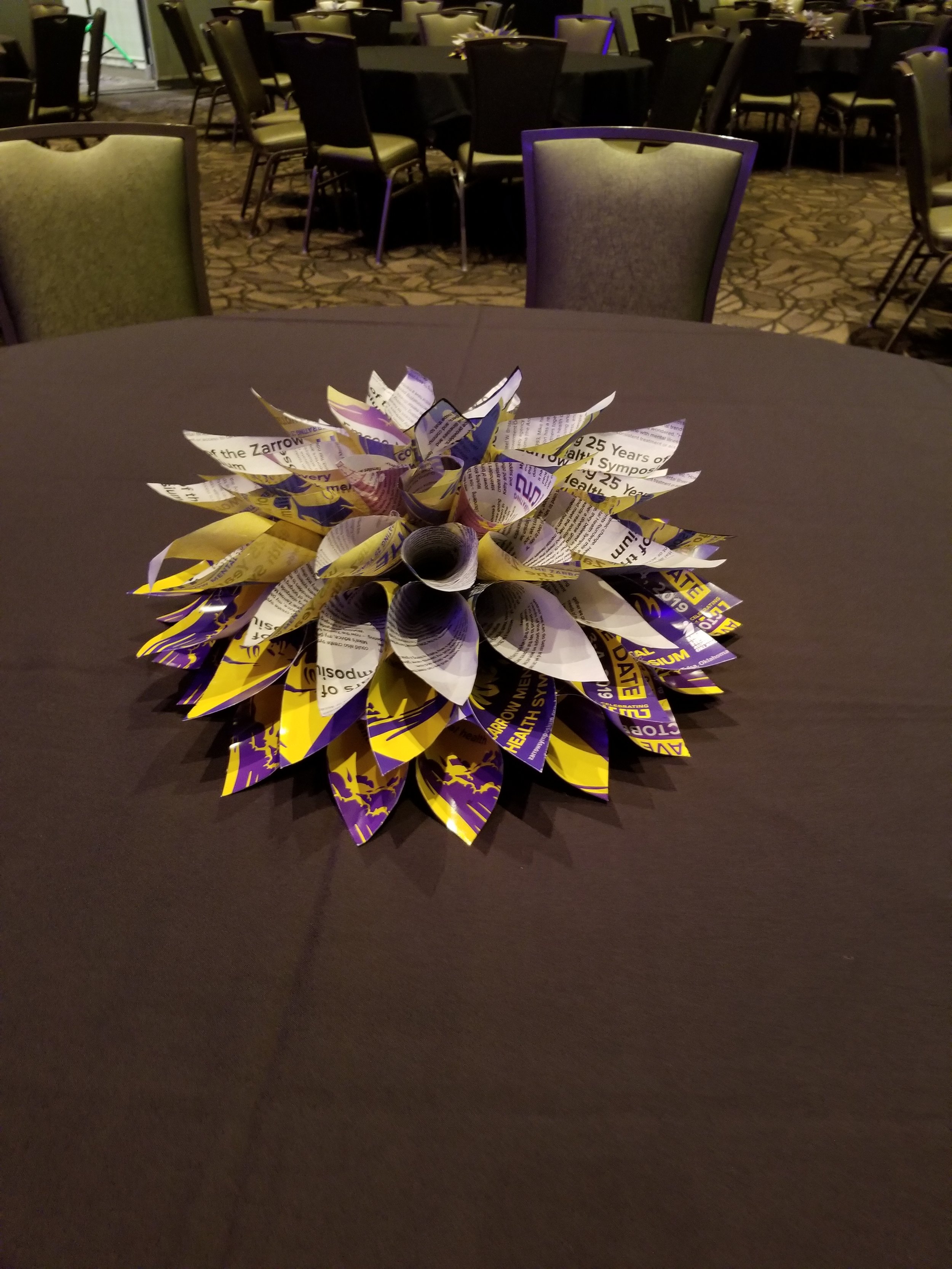 One of my more interesting achievements was the year I saved the event about $1,200 by hand-designing 80 centerpieces with recycled leftover mailers.
